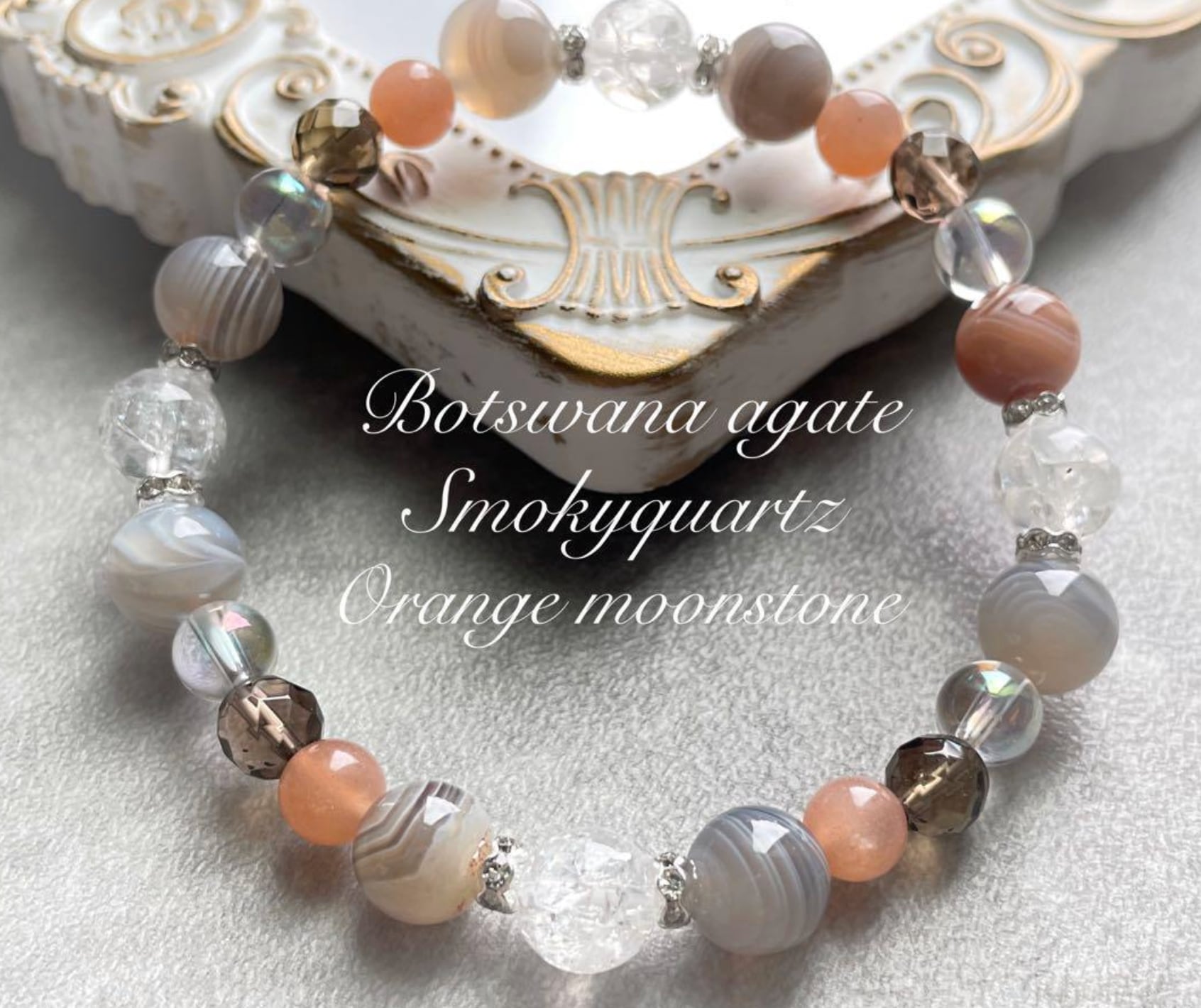 lady's ボツワナアゲート スモーキークォーツ オレンジムーンストーン 天然石パワーストーンブレスレット