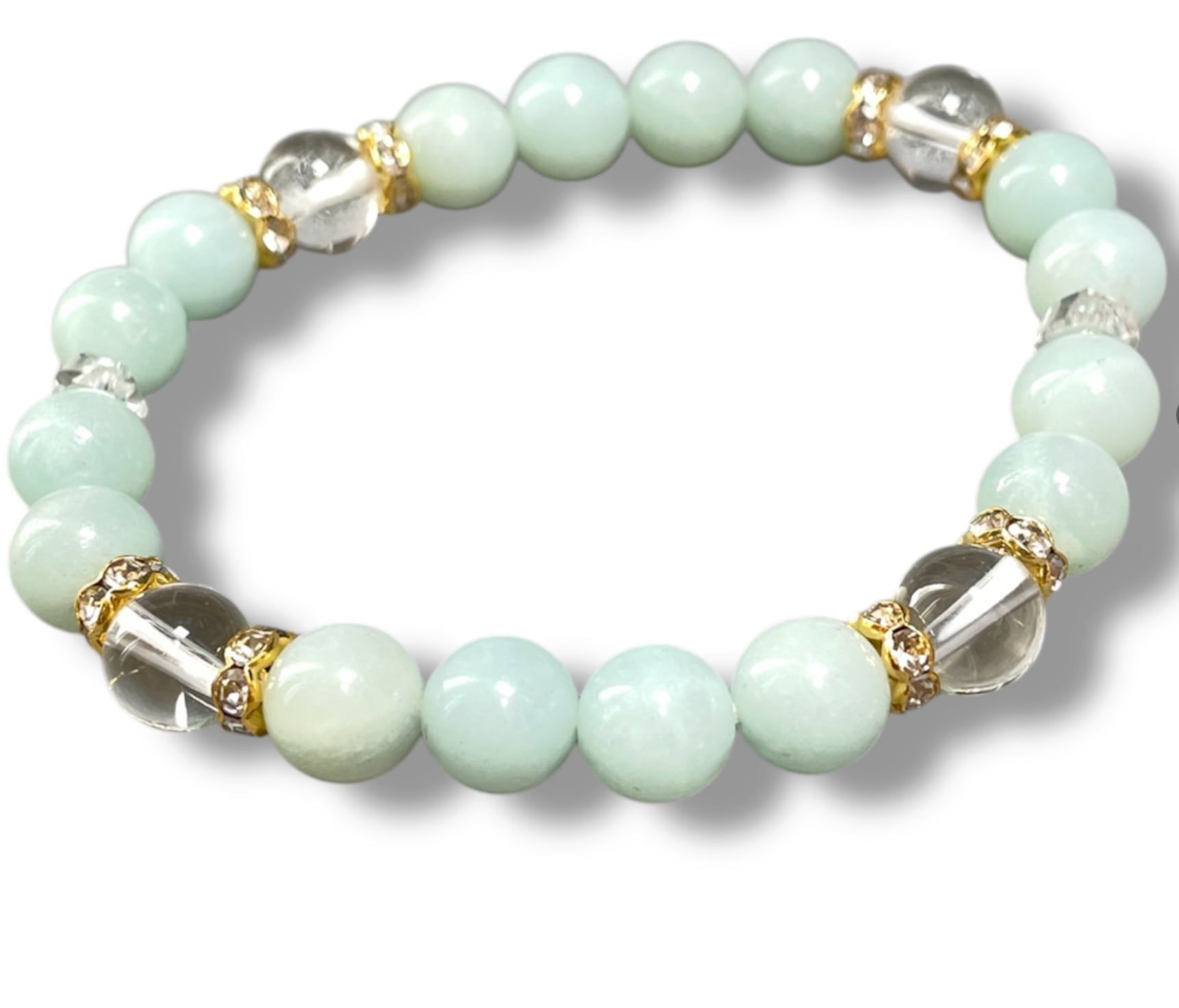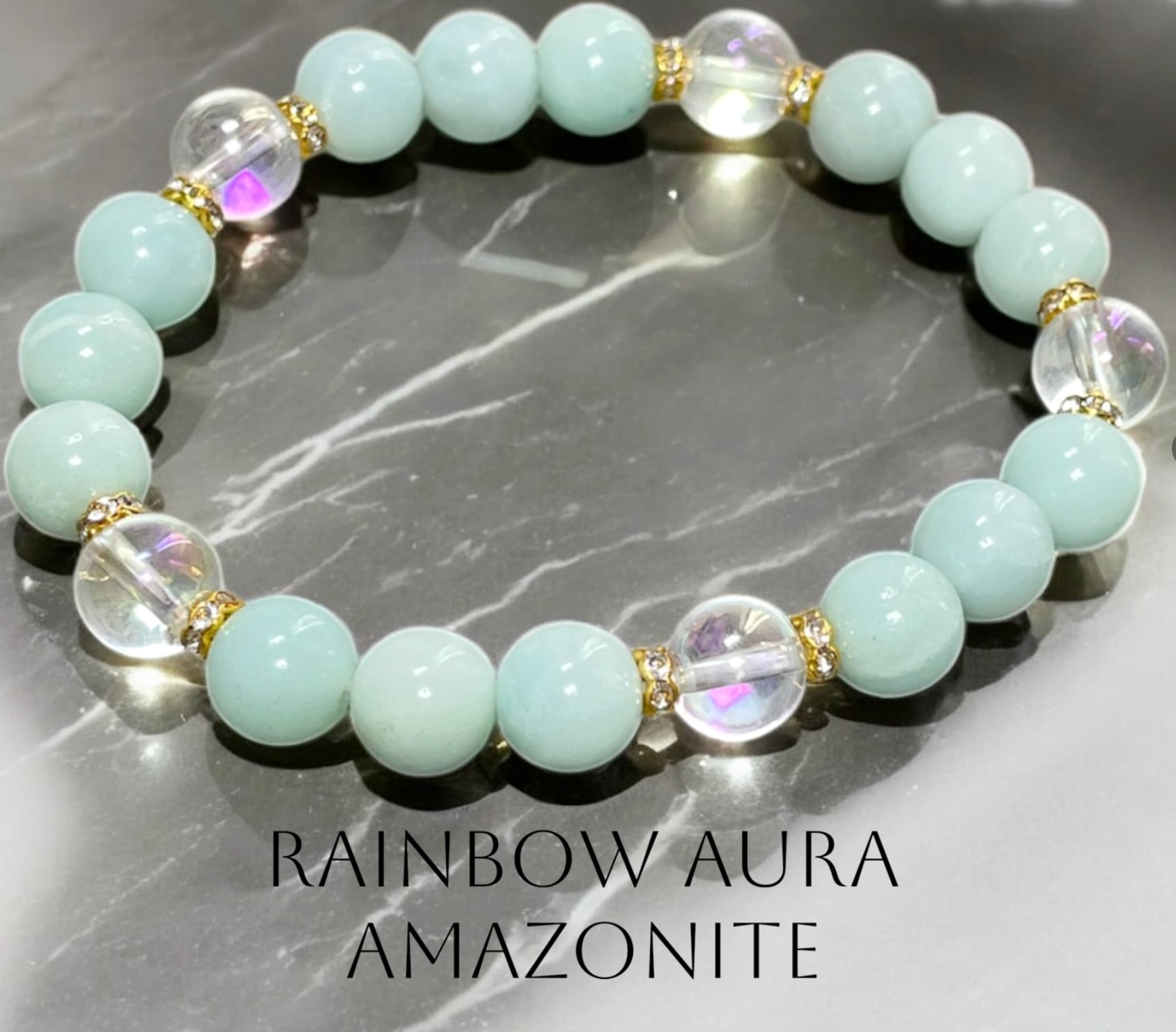 【限定2本】可愛い☆アマゾナイト & レインボーオーラ 水晶 天然石パワーストーンブレスレット